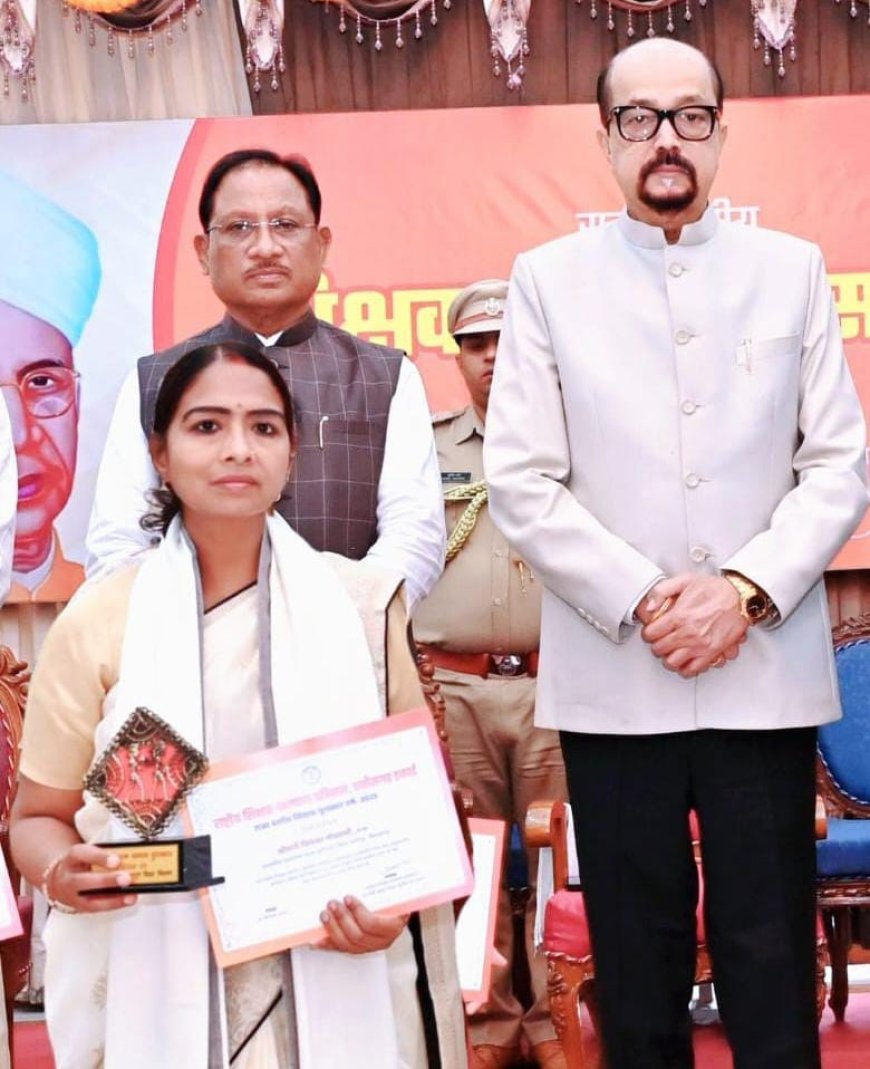 सारंगढ़ - बिलाईगढ़, 5 सितम्बर 2025/ शिक्षक दिवस के अवसर पर राजभवन रायपुर में जिले की शिक्षिका प्रियंका गोस्वामी और समय लाल काठे को राज्यपाल रमेन डेका , मुख्यमंत्री विष्णुदेव साय एवम स्कूल शिक्षा मंत्री छत्तीसगढ़ शासन ने राज्यपाल शिक्षक सम्मान से सम्मानित किया।