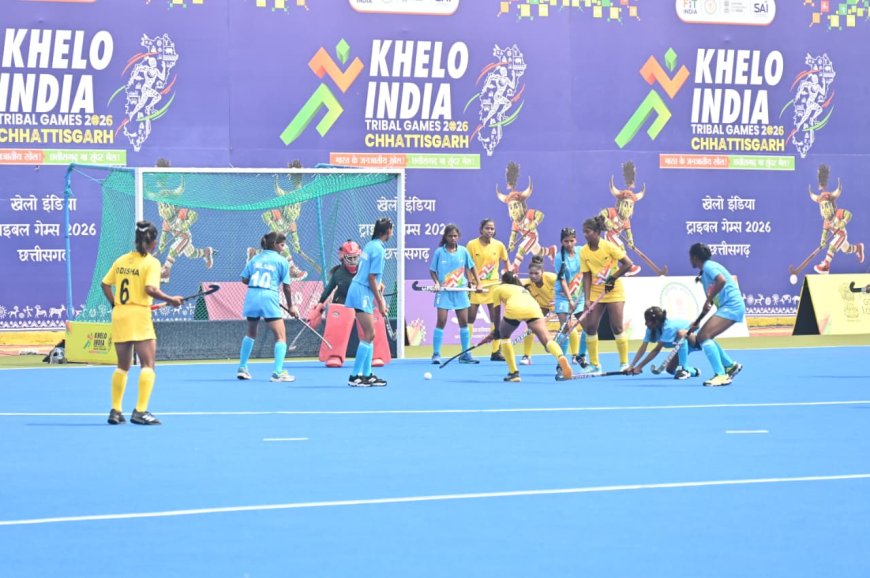 रायपुर : खेलो इंडिया ट्राइबल गेम्स 2026 : महिला हॉकी में एकतरफा मुकाबले